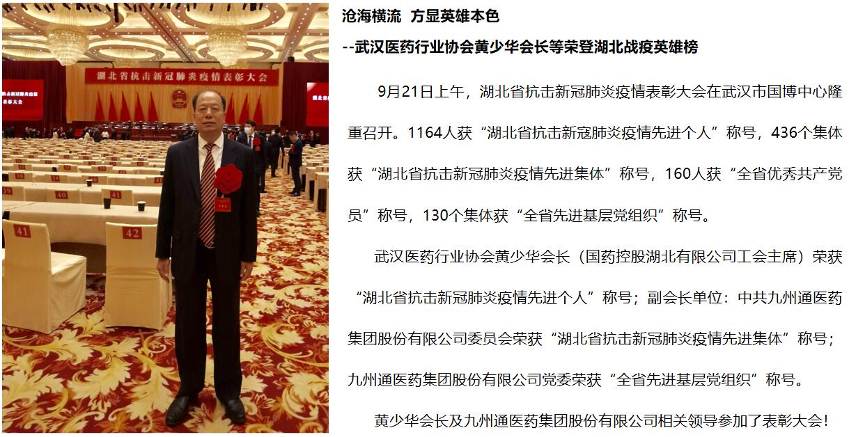 沧海横流 方显英雄本色 --武汉医药行业协会黄少华会长等荣登湖北战疫英雄榜