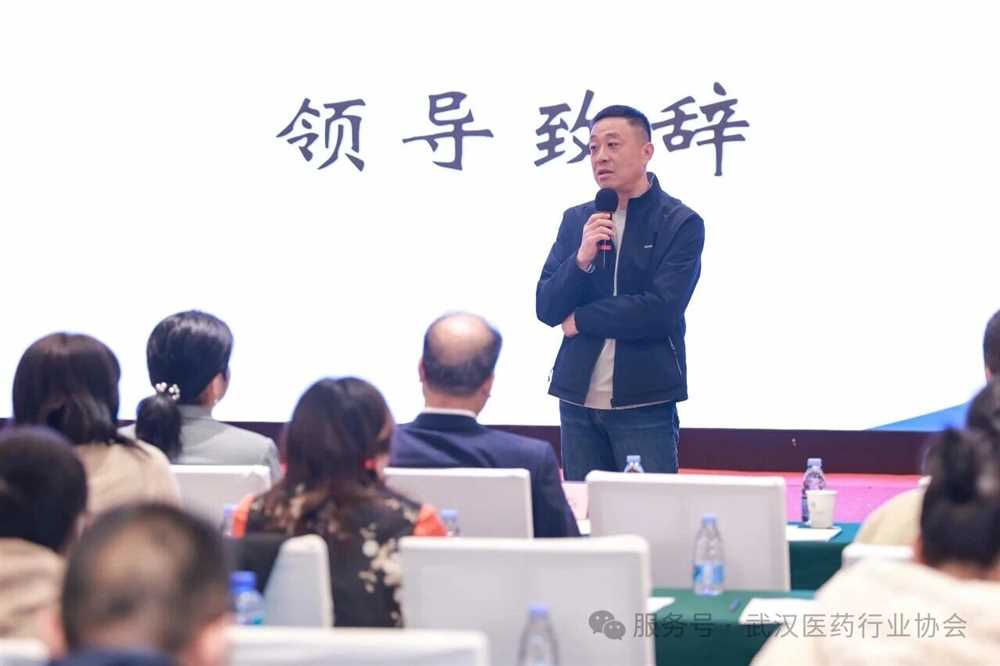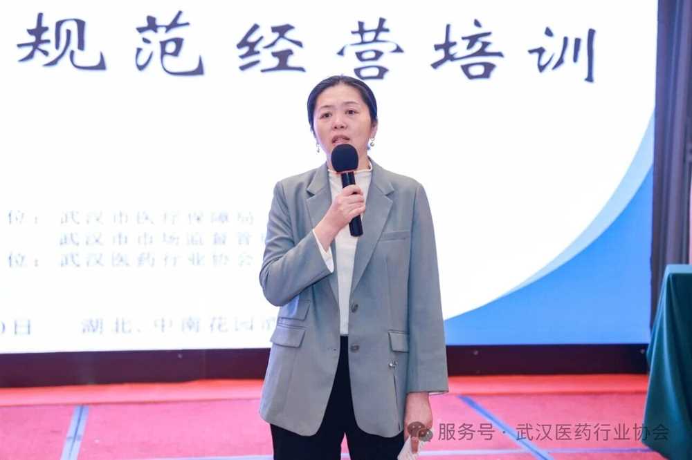随后,武汉市市场监督管理局药化处副处长杨智(以下简称 “杨副处长”)聚焦药学服务质量提升展开讲话。他指出,2024 年推出的《零售药房药学服务公约》在执行过程中,各企业落实水平参差不齐,在日常监管中也发现不少企业存在药学服务不到位、服务标准不统一等问题。杨副处长表示,希望通过本次培训,帮助各药品零售企业补齐管理短板,切实提高经营管理水平,系统提升药学服务能力,最终实现以更优质的服务满足群众用药需求、保障群众用药安全的目标。